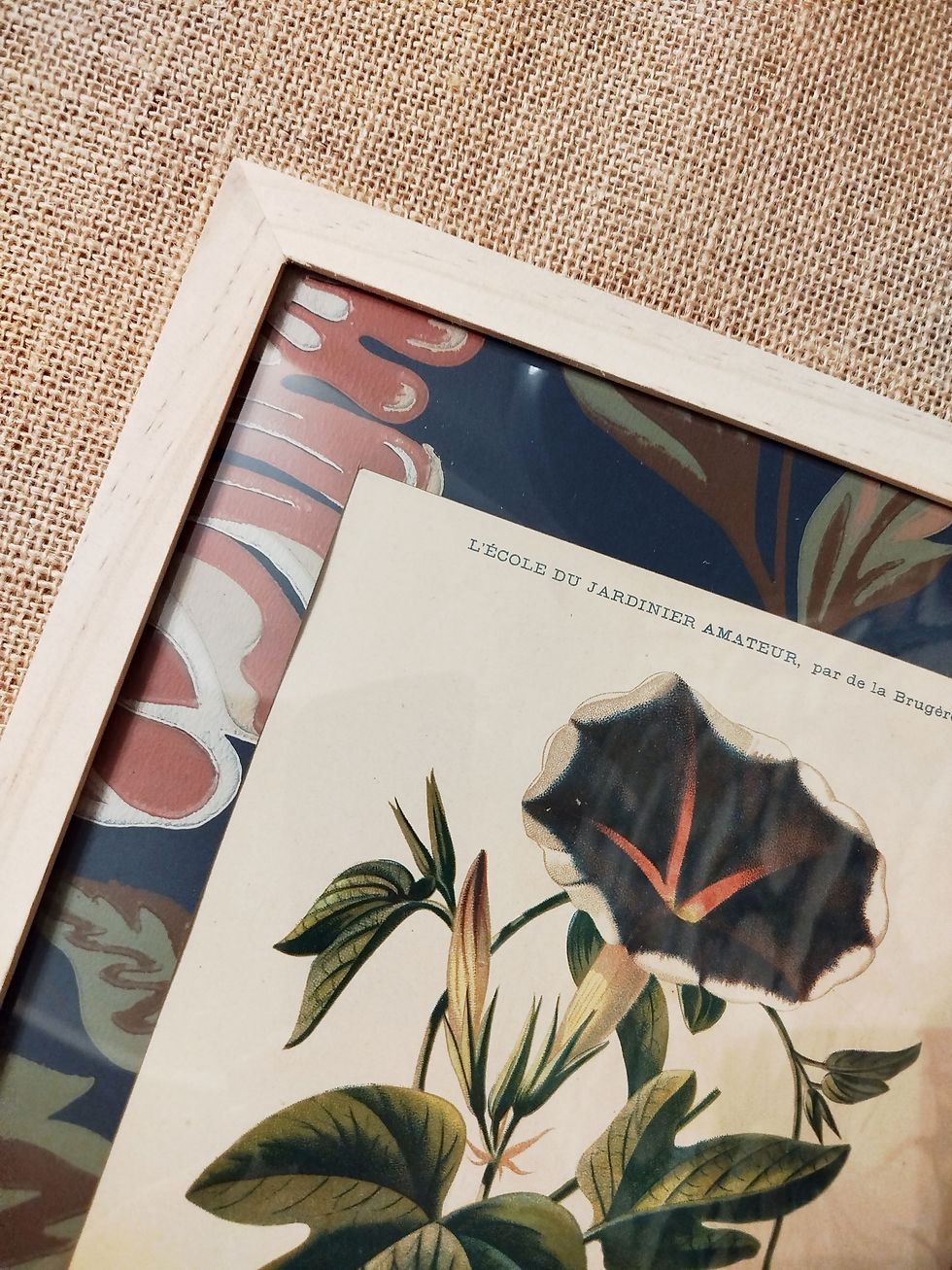 - Pose d'une tapisserie aux motifs floraux blancs, jaune et vert d'eau